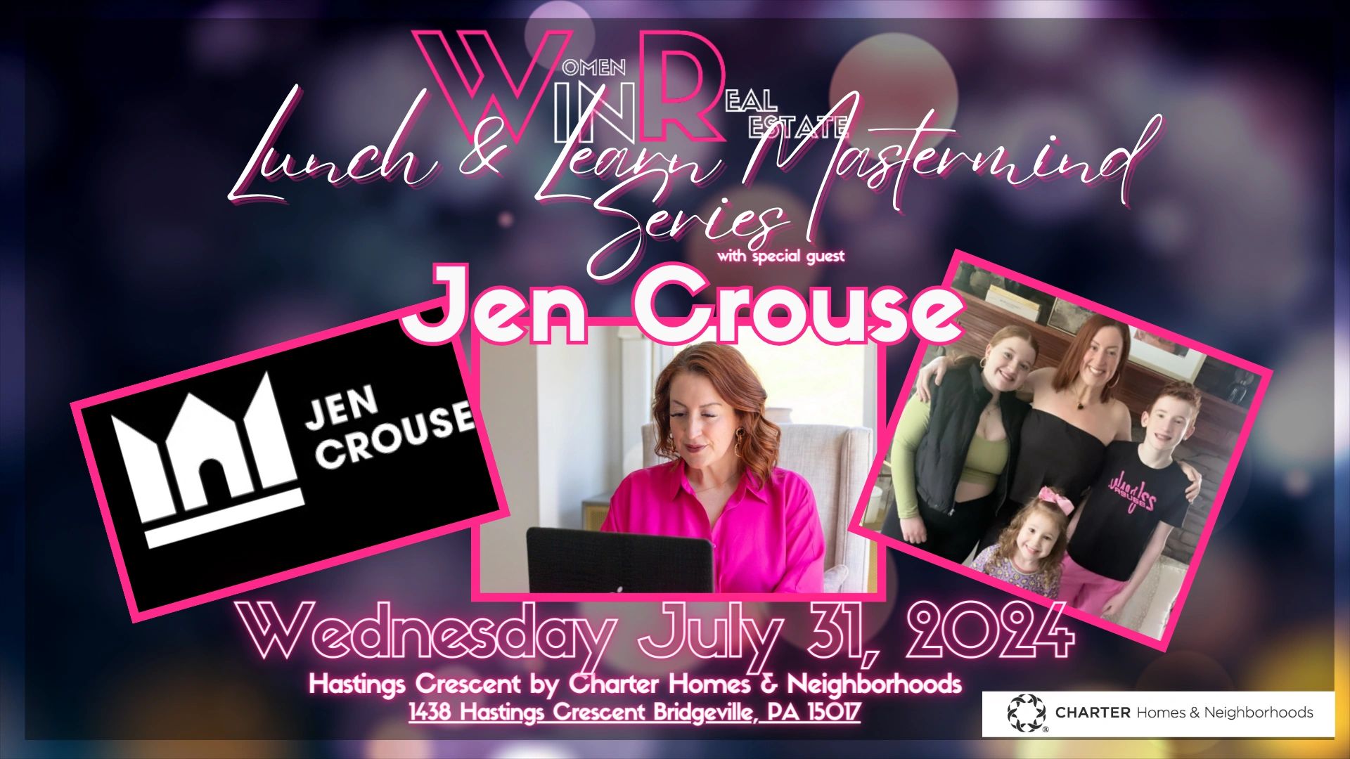 Join us for the 3rd Women in Real Estate Mastermind Lunch & Learn event on Wednesday, July 31st at 11am @ Hastings at Charter Homes! Special guest speaker is the matchless Jen Crouse, the amazing “go-to“ realtor for South Fayette and beyond! Not only is Jen one of the best in the business, she’s an incredible mom of three amazing children, and will be sharing invaluable insights on how she balances it all and tips on how help to elevate our real estate expertise!